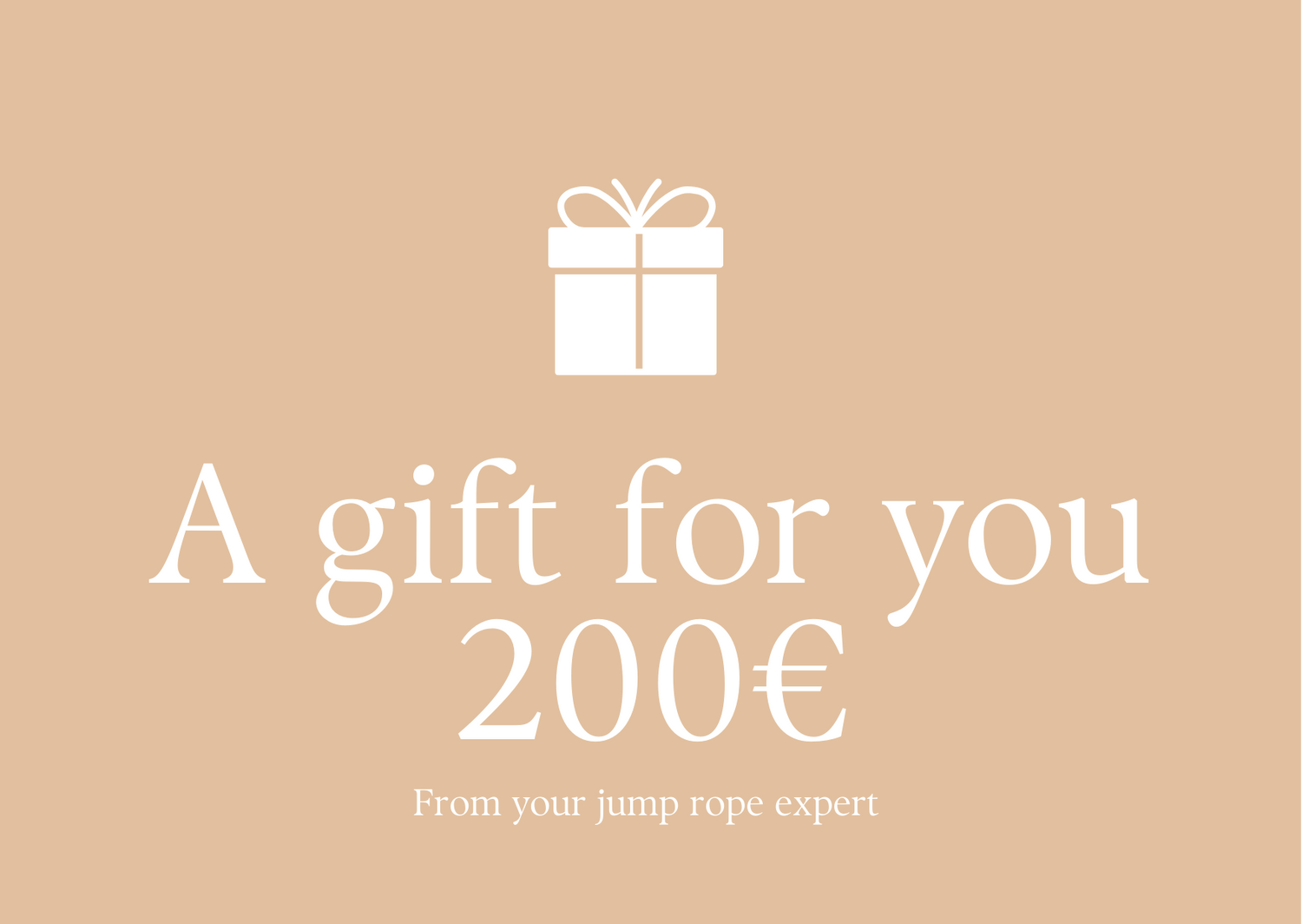 Not sure what to get? Let them choose with our versatile gift cards! Available in €25, €50, €100, and €200, these digital gift cards are perfect for anyone passionate about skipping or looking to improve their skills. Whether it’s for a beginner, a fitness enthusiast, or a seasoned pro, they’ll love the freedom to select the perfect tools for their jump rope journey.