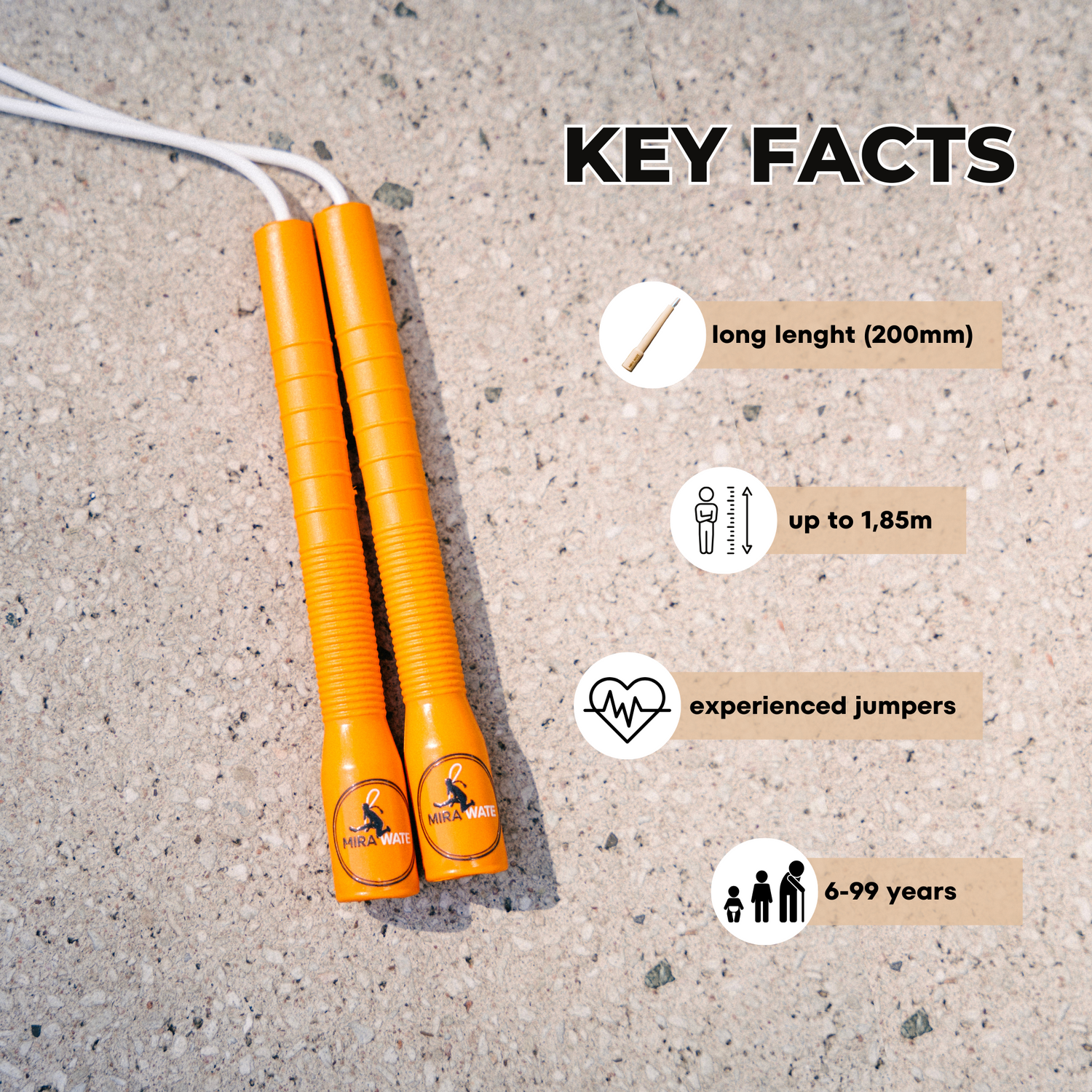- Durable 4mm PVC and 20cm handle built for speed jumping and double under cross over jumps.